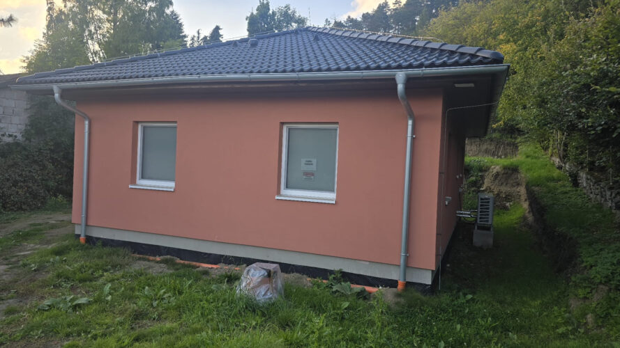 Pan Škoda: „Jo, jo, tak to máte pravdu – my jsme do toho taky dali kus vlastní práce. Už na začátku jsme si s Ekonomickými stavbami nastavili, co by šlo udělat svépomocí, abychom trochu ušetřili a zároveň si ten dům tak nějak víc přizpůsobili sobě.