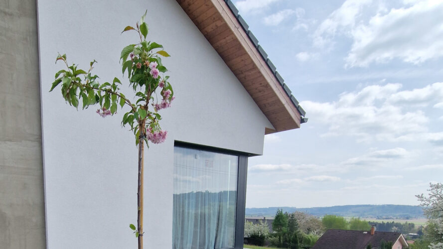 „Původně jsme uvažovali o patrovém domě z řady Blanka, ale když jsme našli náš pozemek, všechno se změnilo. Leží ve svahu a nabízí nádherný výhled do údolí, což nás naprosto uchvátilo. Kvůli tomu jsme nakonec přehodnotili své plány a rozhodli se pro bungalov Kristýna 27 s prosklenou jižní stěnou, aby se výhled co nejvíce otevřel a stal se dominantou celého domu.